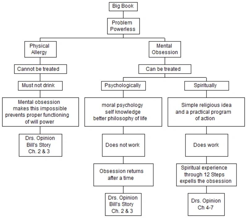 Well then, why this workshop-style approach? For an answer to that, we refer to The Little Red Book: An Orthodox Interpretation of the Twelve Steps of the Alcoholics Anonymous Program by Edward A. Webster, first published in 1946 - a book considered to be the very first step working supplement to the actual Big Book. In the Introduction, Webster says, “For those who are willing to accept the AA program as a means of recovery from alcoholism, we recommend a close study of Alcoholics Anonymous. Study it repeatedly. Alcoholics Anonymous has all our answers”. And, in The Author’s Notes, he further states that “Worthwhile results have followed the inauguration of weekly classes devoted to guidance of new members in their quest for a better understanding of the Twelve Steps as a way of life for recovery from alcoholism. These classes...have created a solidarity of understanding within our fellowship. They have brought a closer adherence to the Big Book, better understanding and application of its philosophy, more effective sponsorship, and much higher ratio of sobriety among our members.”